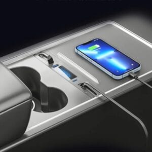- Высокая совместимость: USB-концентратор с быстрой зарядкой 27 Вт для центральной консоли совместим с Tesla Model Y 2023 2022 2021 и Model 3 2023 2022 2021. Обратите внимание, что Tesla USB Hub не совместим с Model S, Model X и т. д.