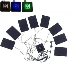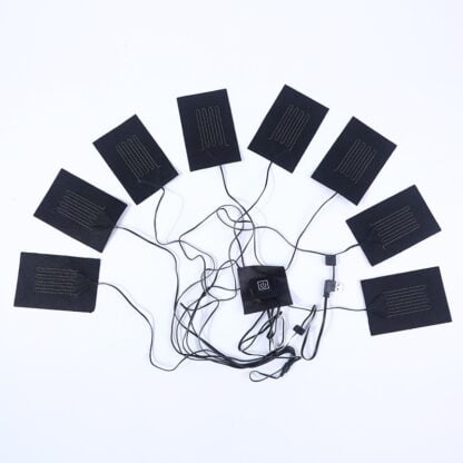 Восемь нагревательных элементов соединены и питаются от одного источника питания USB . Данные элементы подойдут для изготовления одежды с подогревом. Излишки проводов могут сворачиваться и фиксироваться внутри одежды. Для эффективного подогрева рекомендуется вшивать элементы в одежду второго слоя, плотно прилегающую к телу (футболки, рубашки, жилеты и т.д.). Допускается изгибать нагревательный элемент в любых плоскостях с разумными нагрузками. Допускается прошивание на швейной машине и ручными стежками. Меры предосторожности: не протыкать металлическими предметами (иглы, булавки, скобы, и т.д).
