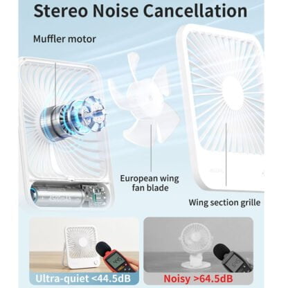 - Настольный мини-вентилятор работает очень тихо, шум не превышает 40 дБ.