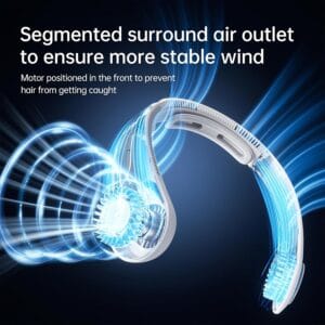 - Мощное охлаждение на 360 градусов. Вентилятор оснащен 5 режимами работы, которые обеспечивают комфортную прохладу, с регулированной интенсивностью обдува. Сегментированный воздуховод и широкая опора для шеи создают большее пространство для циркуляции воздуха. Это обеспечивает быстрое и равномерное охлаждение на 360 градусов. Мотор в вентиляторе расположен специально спереди, чтобы исключить запутывание волос.