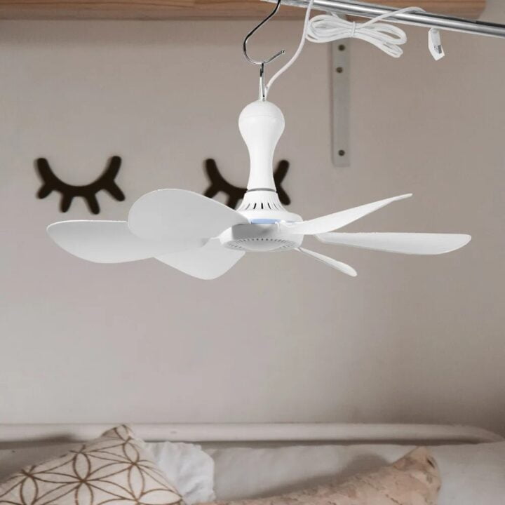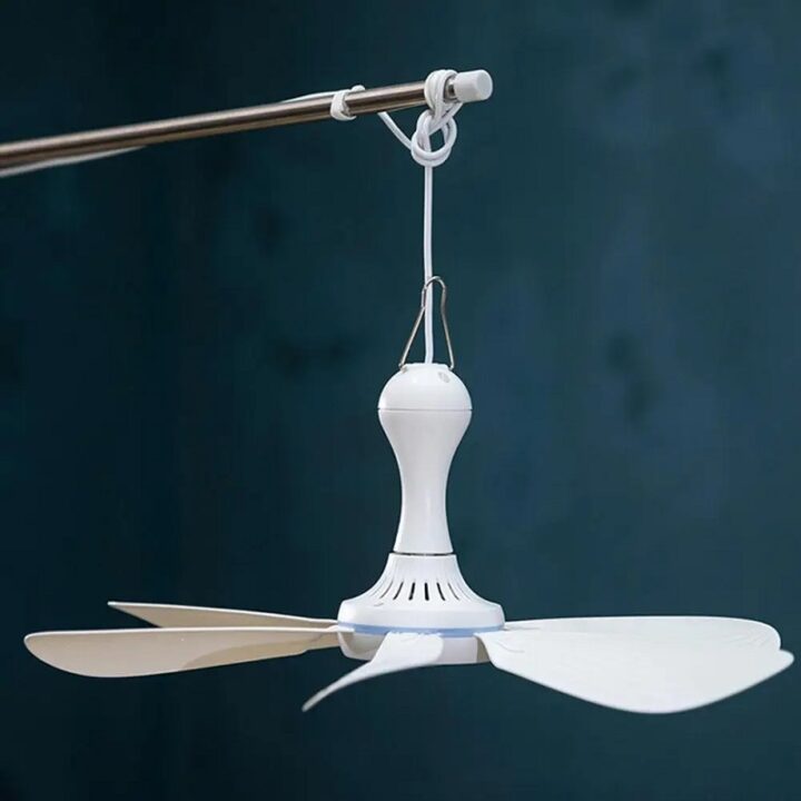 Потолочный USB вентилятор Boshje отличается высоким качеством и простой установкой. Чтобы собрать вентилятор и подготовить его к работе, вам нужно только вставить лопасти вентилятора в отверстия до щелчка и подвесить, а затем подключить удлинитель. Питание через интерфейс USB имеет ряд преимуществ. Вы можете подключить вентилятор к любому устройству с USB разъемом — ноутбуку, Power Bank, разъему в автомобиле. Благодаря этому устройство портативное, его можно разместить где угодно.