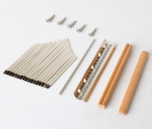 Также калимбу очень легко сделать своими руками. Для этого нужно собрать материалы из которых состоит инструмент. Мы предлагаем купить набор профессиональных язычков для создания калимбы, которые изготовлены из высококачественной нержавеющей стали. На язычках имеется гравировка с цифрами и буквами, что обозначает ноты.  Также в комплекте есть все необходимое, чтоб закрепить язычки не деревянной пластине- резонаторе. Сделав инструмент своими руками, вы получаете уникальное изделие, в которое вложена часть души, часть жизни.