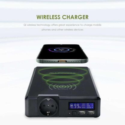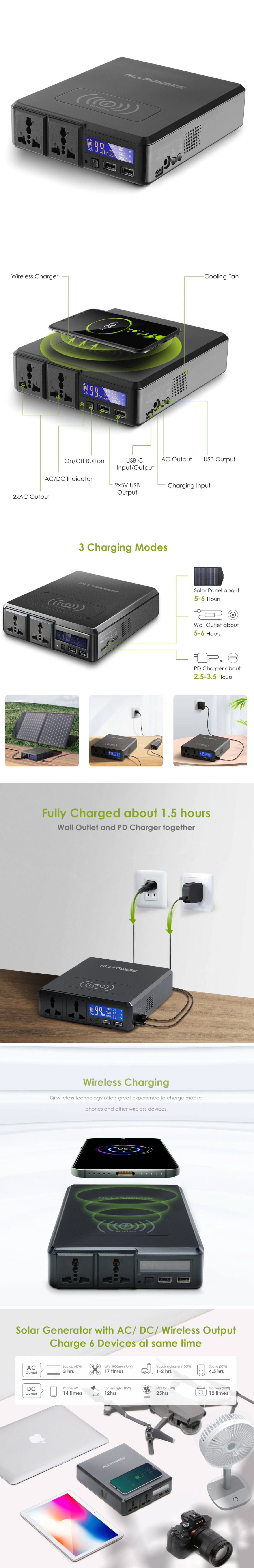 - Портативный солнечный генератор ALLPOWERS имеет функцию беспроводной зарядки (5V 1A, 2.4A макс.) и поддерживает большинство смартфонов, которые оснащены стандартной технологией QI.