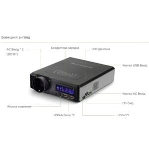 Зарядная станция Allpowers 41600 – это не просто внешний аккумулятор, а мощное портативное зарядное устройство, которое легко справится с зарядкой и питанием любой мобильной и бытовой техники. Зарядка и питание мобильных устройств происходит с помощью 2 USB портов и скоростного порта type-C. А для питания бытовой техники портативный аккумулятор оснащен розеткой 220 вольт. Также есть площадка для беспроводной зарядки – QI wireless. В качестве накопителя энергии используются Li-ion аккумуляторные элементы общей емкостью 41 600 mAh. Срок службы батареи – 700 циклов без понижений эффективности.