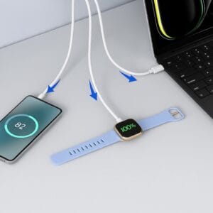 - Заряжайте до 3 устройств одновременно: встроенный кабель USB-C, дополнительный порт USB-C и порт USB-A позволяют одновременно заряжать, к примеру, ноутбук, смартфон и планшет.