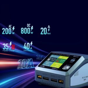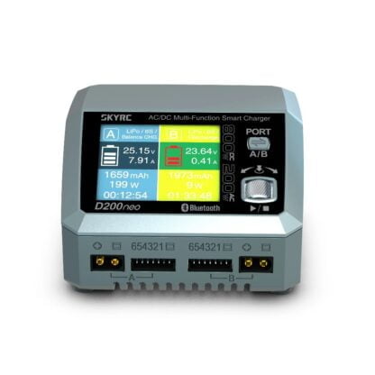 Портативная станция SkyRC D200Neo – устройство, обеспечивающее мгновенную зарядку током до 35А. Оно создано для экономии времени пользователей и обеспечивает двухпортовую параллельную зарядку. Этим зарядным устройством удобно пользоваться благодаря встроенному цветному дисплею. Кроме того, он умно и динамично распределяет зарядную мощность. D200Neo также поддерживает USB-C 3.0 Power Delivery (PD), что обеспечивает более быструю и эффективную зарядку. SkyRC имеет встроенный цветной дисплей, что значительно облегчает использование устройства.