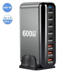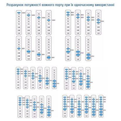 Обратите внимание, мощность устройства 600W распределена между всеми портами, максимальная мощность на одном порте 140W, читайте описание.