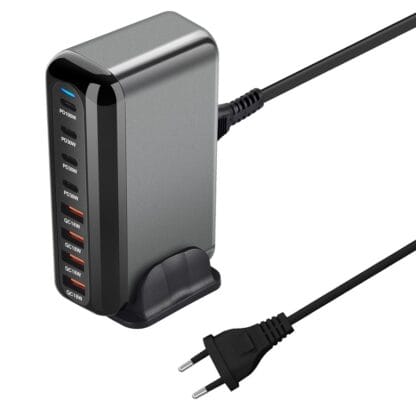 - Может заряжать до 8 устройств одновременно, что делает ее идеальным решением для дома, офиса и путешествий.