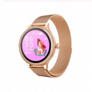 Смарт-часы имеют круглый 1,04 дюймовый цветной экран с разрешением 240*198 пикселей. Экран сенсорный частично- сенсорная только нижняя часть. Емкость аккумулятора составляет 150 мАч, благодаря чему часы могут работать до 7 дней в режиме использования. Ремешок часов сделан из металла с магнитной застежкой, это очень удобно. Также при необходимости ремешок можно заменить на другой.