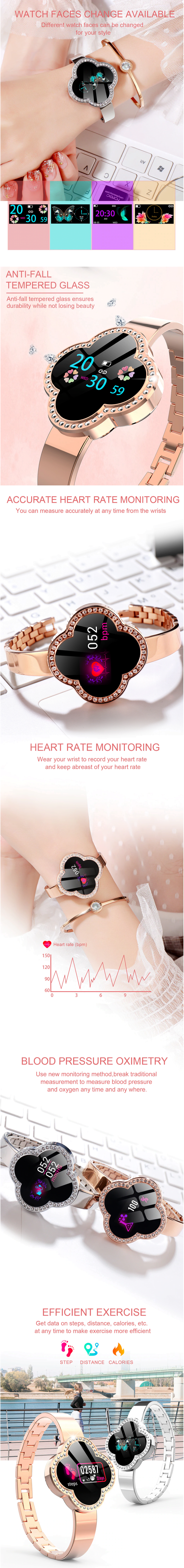 Женский смарт браслет S6 ваш незаменимый красивый помощник. Экран часов изготовлен в виде клеверного листа, что придает часам уникальную изюминку. Часы имеют цветной дисплей 0,96 дюйма с разрешением 160*80 пикселей. Емкость аккумулятора 90мАч., зарядки хватает до 5 дней в режиме использования или до 10 дней в режиме ожидания. Батарея фитнес трекера S6 заряжается довольно быстро, около 1,5 часа с помощью магнитного зарядного устройства.